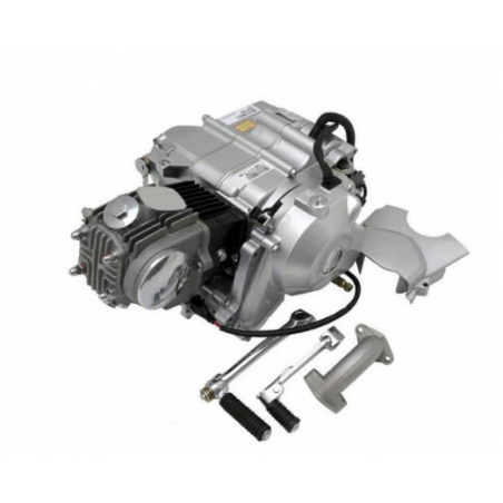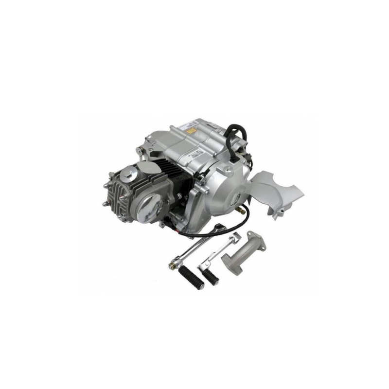 Moteur YX 50cc. Embrayage manuel sur vilebrequin. Démarage au kick et démarreur électrique. Carter gris, cache pignon fourni. (inscription 50cc sur le moteur) Pipe admission fournie avec le moteur.